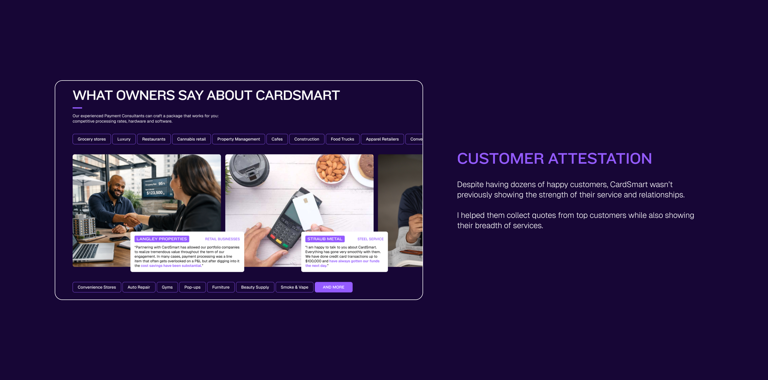 Overall, I learned that building trust is absolutely critical for any business—in any way you can. CardSmart delivers good products, but it wasn't up until now that they were able to market and depict that in a packageable way.