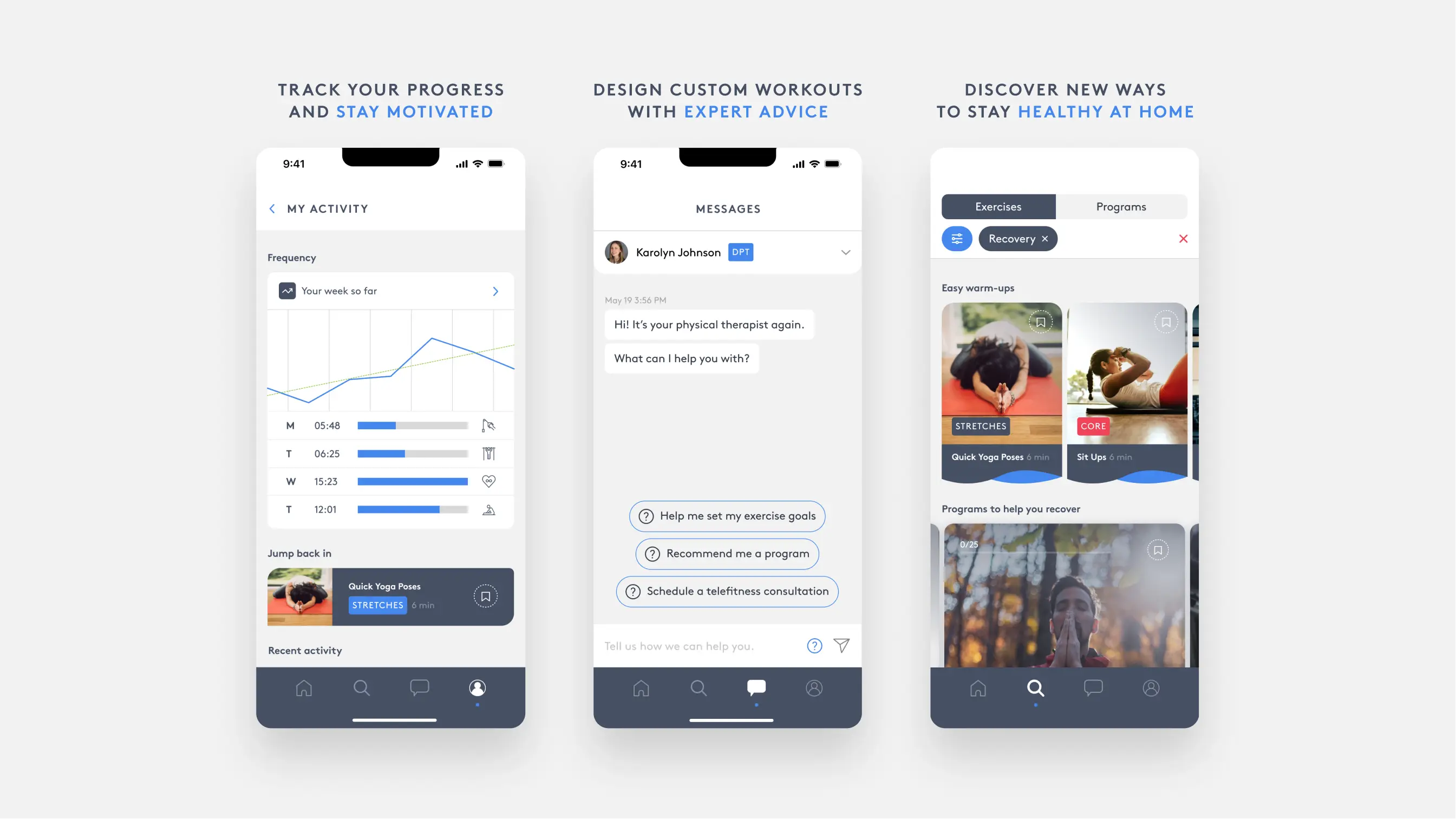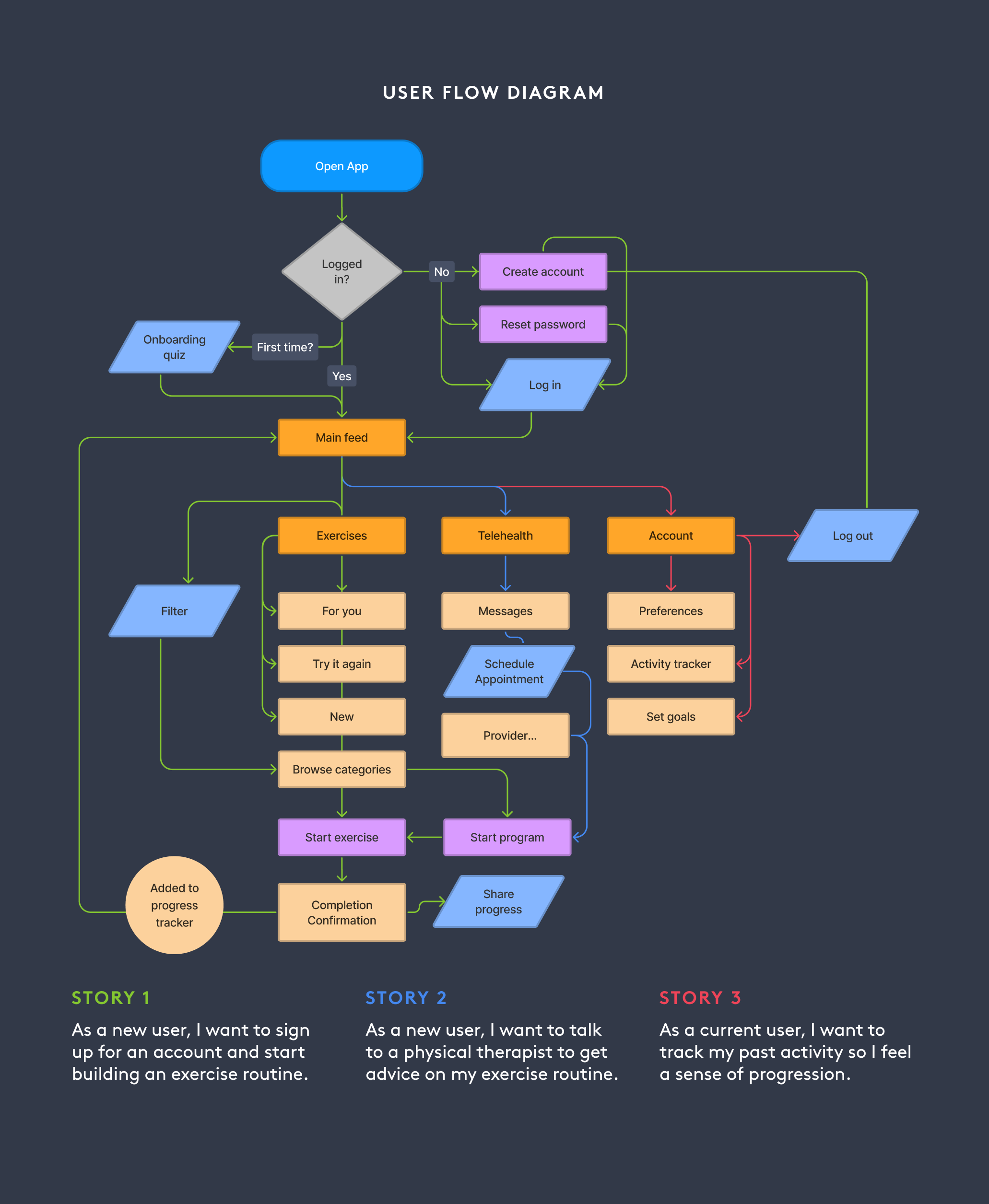 Our agency took on the challenge of moving these patient-provider interactions into the virtual space. We created an app that would allow anyone to build healthy habits at home, with the guidance of their physical therapist.